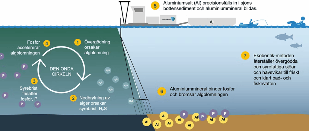 Hedemora kommun kommer därför att utföra aluminiumbehandling av sjöns bottensediment. Ett aluminiumsalt kommer, under mycket kontrollerade former, att harvas ner i de översta tio centimetrarna av botten. Aluminiumsaltet är precis samma kemikalie som används för vattenrening vid vattenreningsverk. Kommunen har de tillstånd som krävs för att utföra åtgärden inom vattenskyddsområdet.
