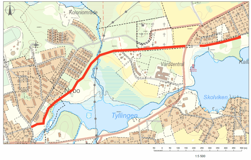 Projektering för gatubelysning vid gamla banvallen i Långshyttan.