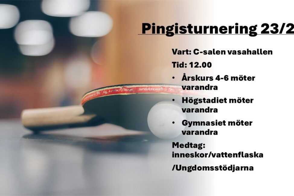 Under sportlovet har vi pingisturnering i C-salen Vasahallen.