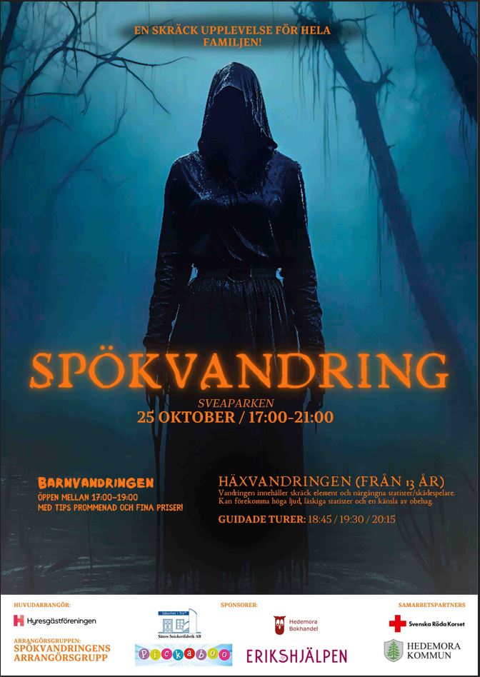 Den 25 oktober arrangeras årets spökvandring i Sveaparken, av en privat arrangörsgrupp i samarbete med Hyresgästföreningen Dalarna.
