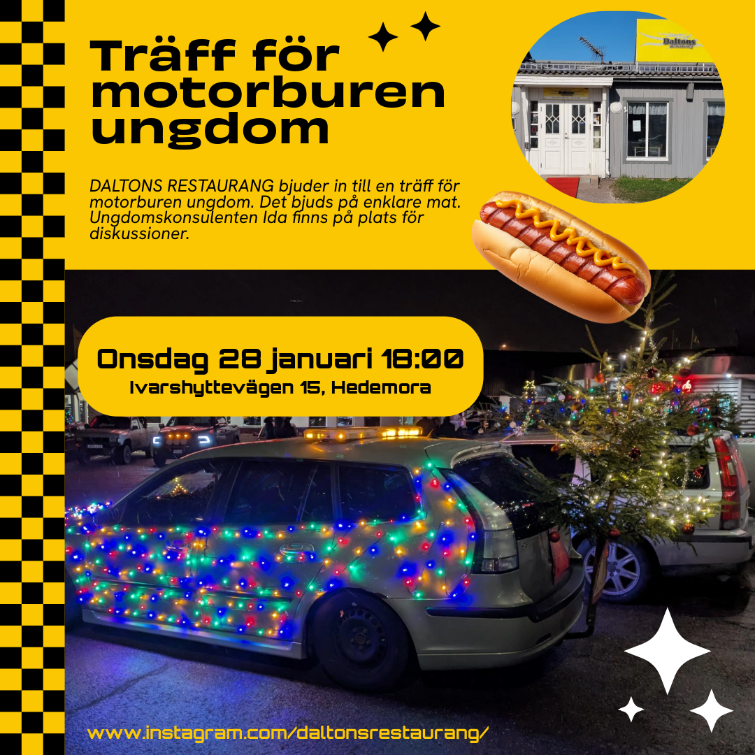 Daltons restaurang bjuder in till en träff för motorburen ungdom. Det bjuds på enklare mat. Ungdomskonsulenten Ida finns på plats för diskussioner.