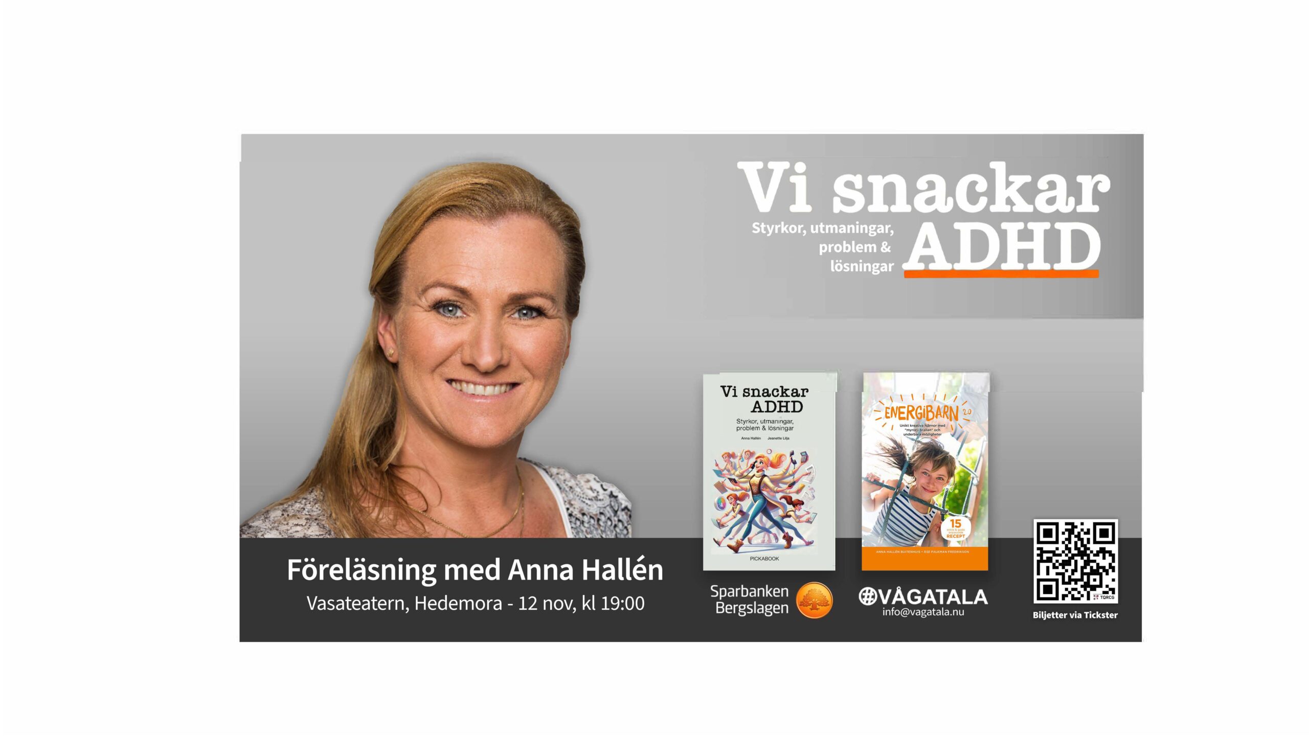 Anna Hallén delar med sig av sin egen erfarenhet och sin breda yrkesbakgrund som gymnasielärare, resurspedagog, socionom och certifierad ADHD-coach. Med värme, humor och kunskap lyfter hon både styrkor och utmaningar, och visar på konkreta lösningar för vardagen – hemma, i skolan, på jobbet eller i sociala sammanhang.