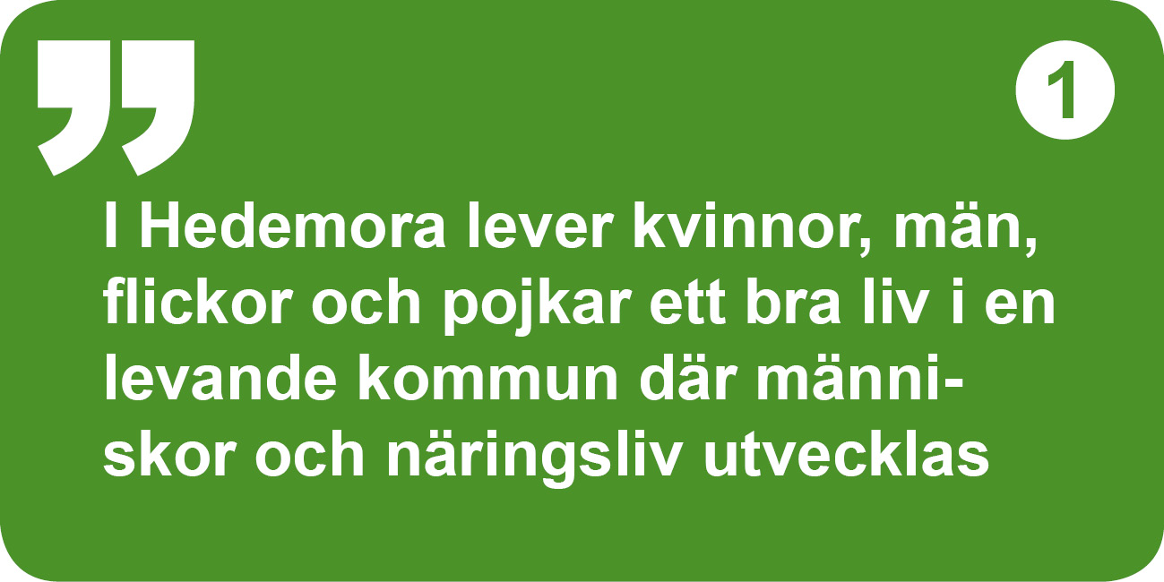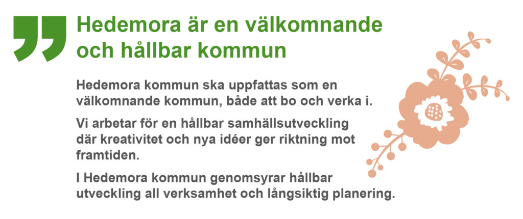 ”Hedemora är en växande, attraktiv och trygg kommun att bo och verka i. I vår